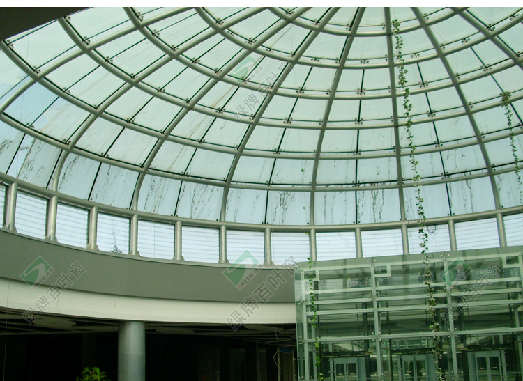 1、幕墻型玻璃百葉窗是綠牌玻璃百葉窗的高級配置,除包含有:防水導水裝置、安全中腰裝置、加強中挺裝置及遠程控制裝置,大氣華美,極富動感,具有很強的幕墻裝飾效果;